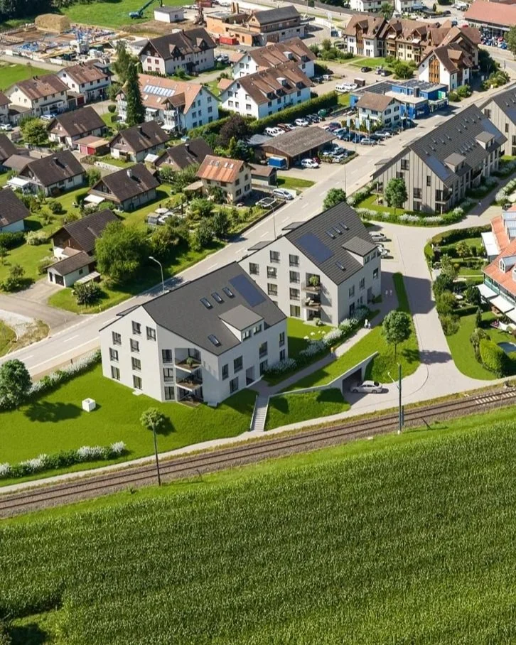 Der Neubau von 2 Mehrfamilienhäuser mit 22 Eigentumswohnungen und gemeinsamer Autoeinstellhalle wurde mit grosszügigen Terrassen ausgestattet.