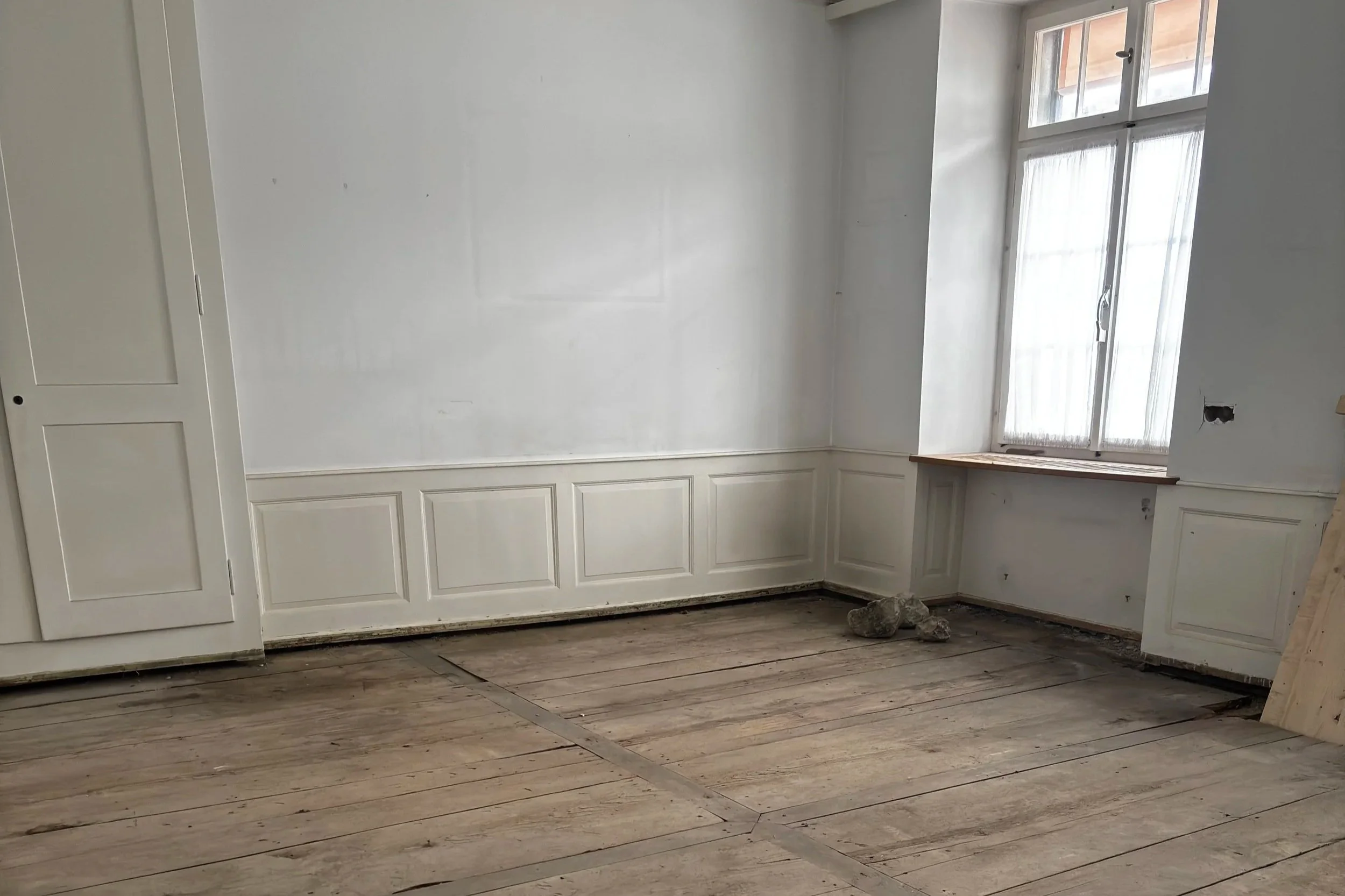 Ein besonderer Moment: Unter dem bestehenden Parkett haben wir in einem Zimmer sehr wahrscheinlich einen ursprünglichen Renaissance-Parkettboden entdeckt: Ein überraschender Fund mit kulturhistorischem Wert.