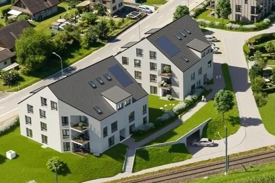 Mit Freude blicken wir auf den erfolgreichen Abschluss eines besonderen Wohnprojekts in Schlattingen zurück. In ländlicher Umgebung im Thurgau ist ein Mehrfamilienhaus mit fünf grosszügig geschnittenen Eigentumswohnungen entstanden, das modernen Wohnkomfort mit traditionellen Gestaltungselementen verbindet.