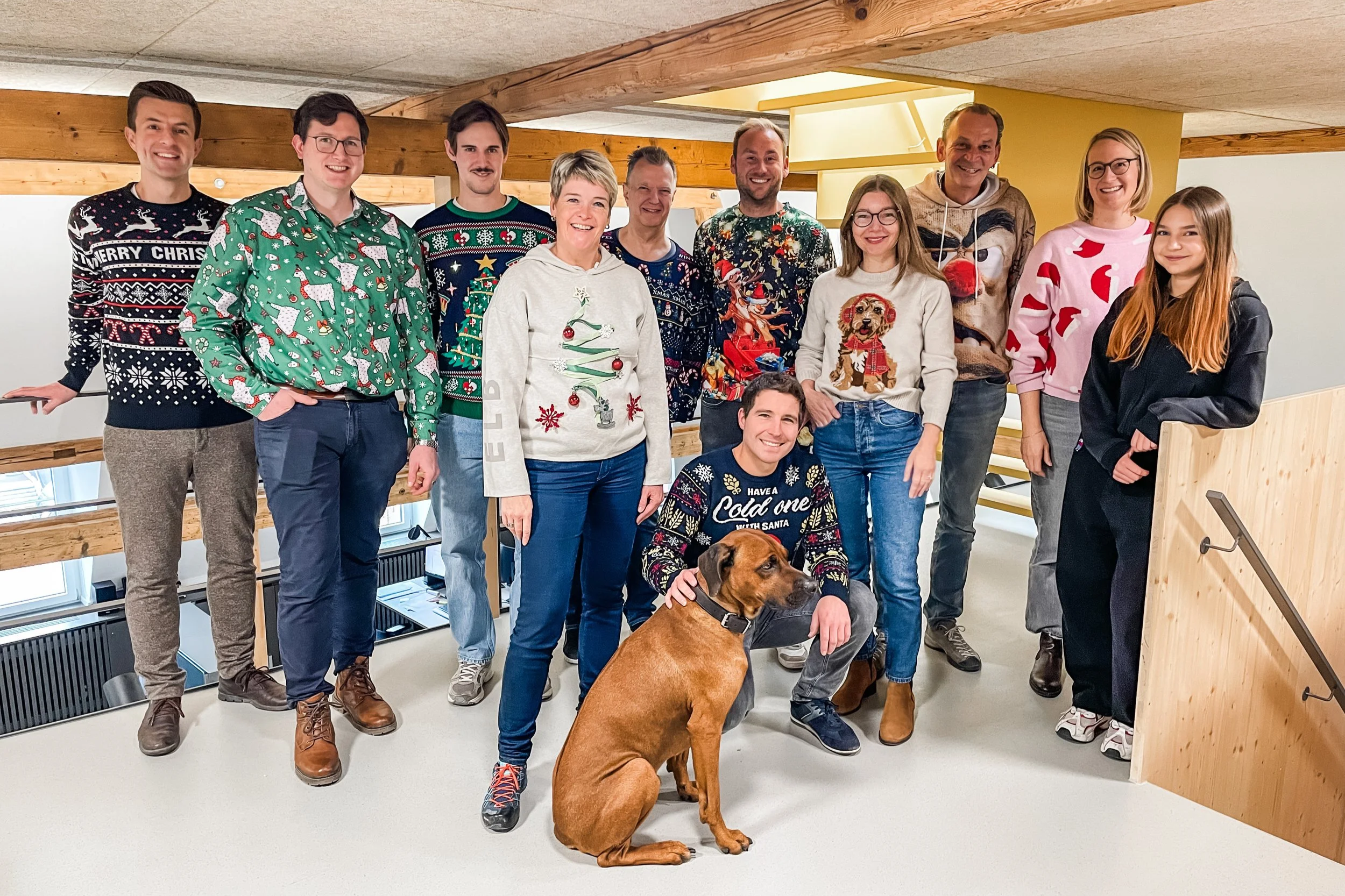 Mit einem Bild unserer „schönsten“ Weihnachtspullover verabschieden wir uns in eine kurze Pause und freuen uns auf ein erfolgreiches und spannendes neues Jahr!